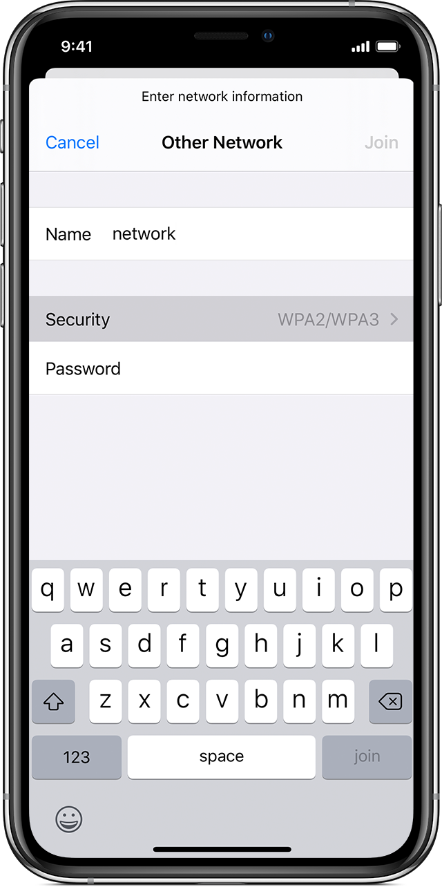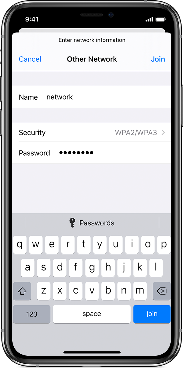 - Enter the password for the secure Wi-Fi network, then tap Join. If you can't tap Join, the password you've entered is incorrect.